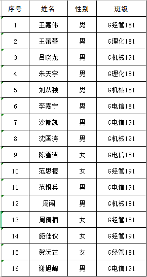 经个人申请、团支部推优、党校培训、党支部考察等程序,确定王嘉伟等16名同志为2021年秋学期党员拟发展对象,按照学校党员发展程序,现予以公示(以姓氏笔划为序):