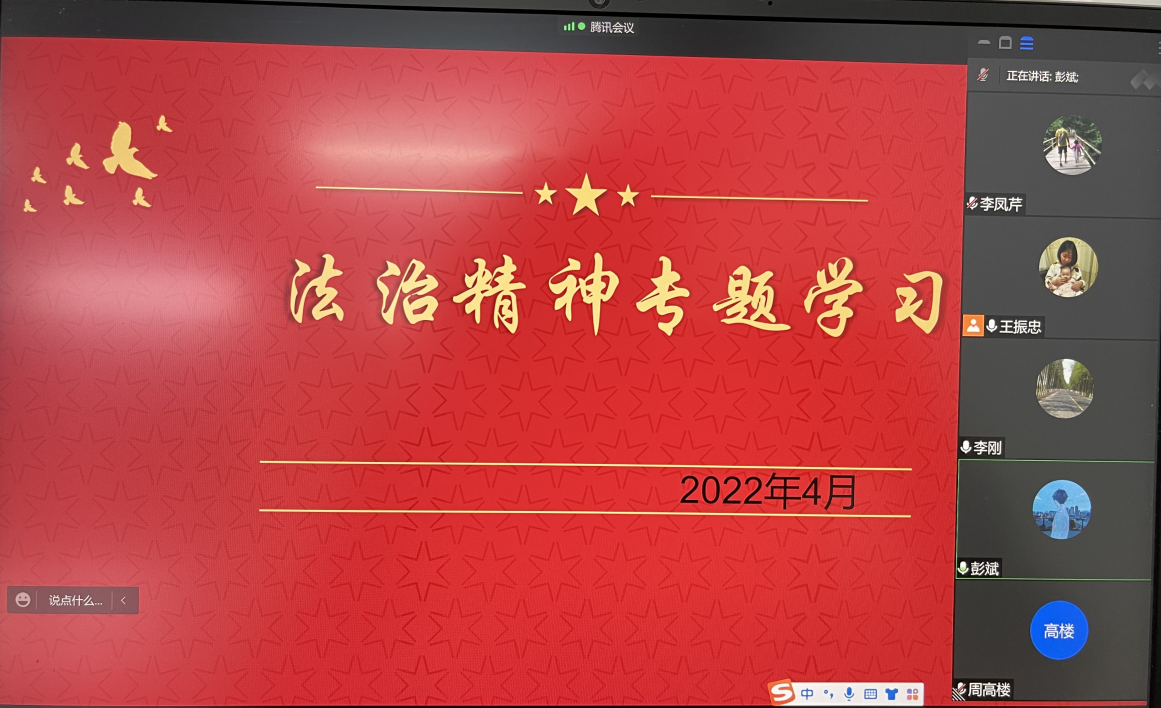 副院长彭斌领学习近平《坚持走中国特色社会主义法治道路更好推进中国特色社会主义法治体系建设》的相关内容,教科研办公室主任王振忠分别围绕学习宣传贯彻习近平法治思想的重大意义和推动英国365公司学生法治教育问题作重点发言。