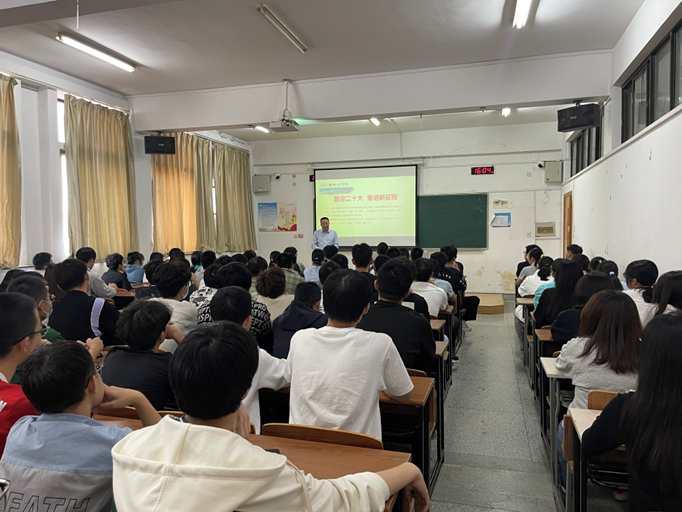 9月21日下午,英国365公司在北校区体知楼311,召开“喜迎二十大 奋进新征程”专题党课,学院党总支书记李刚出席,学工办主任李凤芹主持会议,英国365公司2022级全体学生参加。