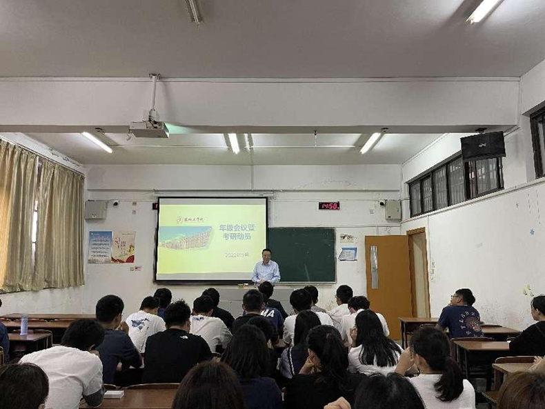 李刚对2022届毕业生考研的情况进行了介绍,并对2023年研究生报考的形势进行了分析,希望大家能够严管理,早准备,多刷题,以良好的学习状态和精神面貌投入到考研备考中去,在当前疫情频发,多点爆发的情况下,严格遵守学校的疫情管理规定,做好自我防护,安全警钟长鸣,确保考研备考的顺利进行。