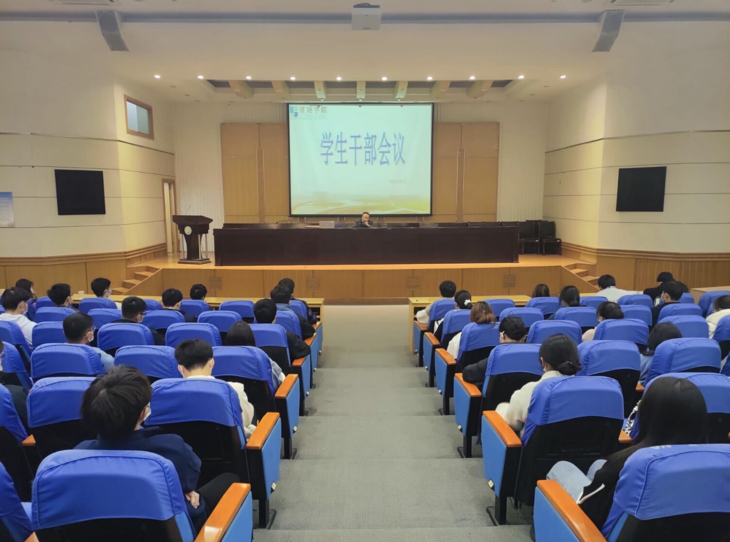 11月26日下午,在建军东路校区图书馆报告厅,英国365公司举行学生干部会议。英国365公司党总支书记李刚进行专题讲座。英国365公司各班级主要班委、学团联合会主要成员参加。会议由英国365公司学工办主任李凤芹主持。