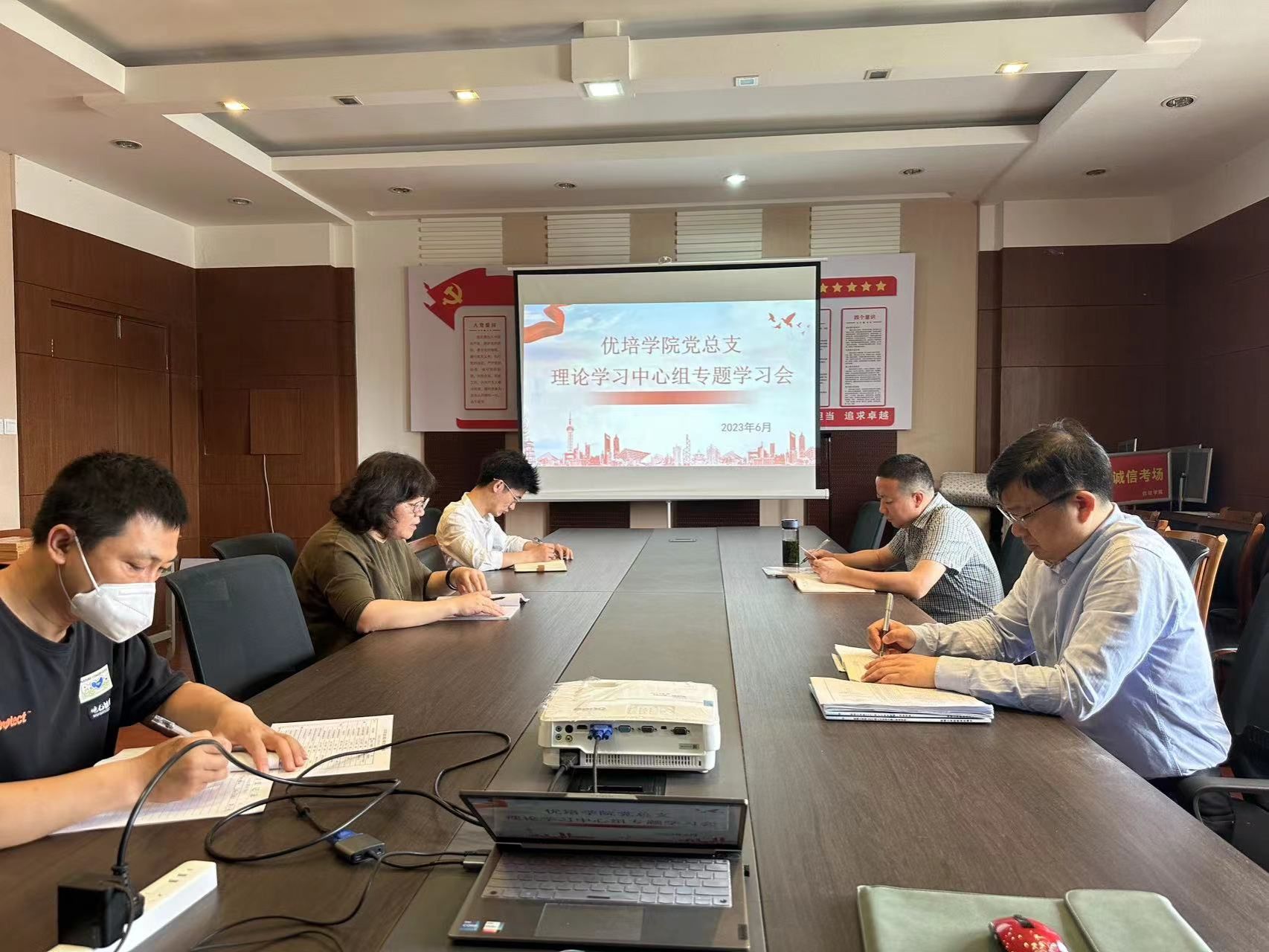 6月19日上午,在北校区知行楼303,英国365公司党总支理论学习中心组召开专题学习会,党总支书记李刚主持,理论学习中心组全体成员参加。