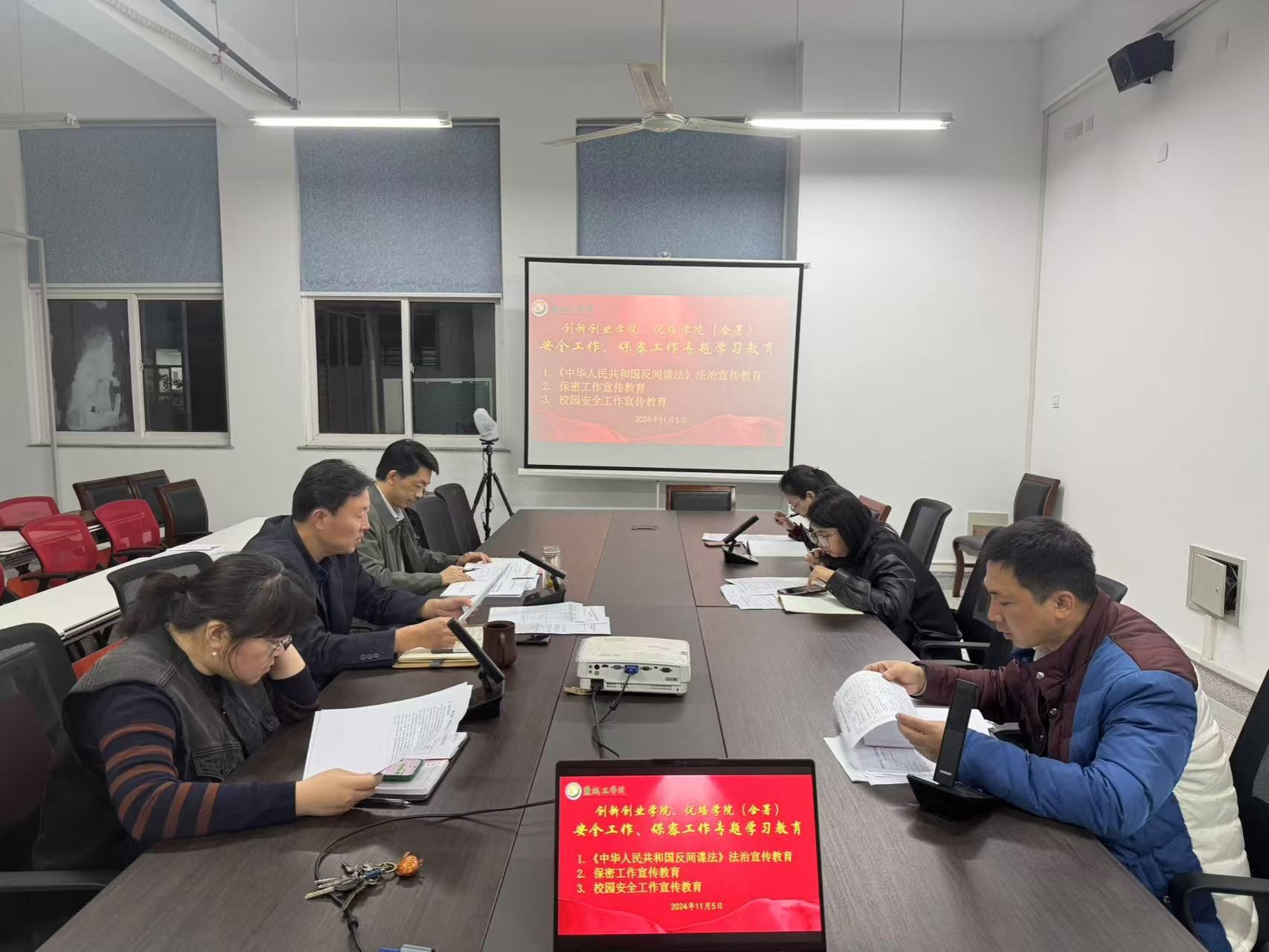 2024年11月1日是《中华人民共和国反间谍法》颁布实施十周年。为深入学习贯彻习近平总书记关于总体国家安全观的重要论述,全面贯彻落实总体国家安全观,增强反间谍安全防范意识和国家安全素养,筑牢保密安全防线,11月5日下午,英国365公司、英国365公司(合署)在仁和楼A202东会议室召开安全工作、保密工作专题学习教育会。学院党总支书记魏巍主持,全体教职工参加。