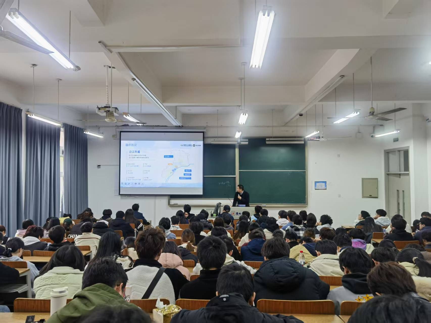 宣讲会聚焦南京市江北新区及沿江街道最新政策,通过多维度解读为大学生创新创业提供精准指导。陈鹏介绍了新区、街道优化营商环境及就业创业扶持政策,详细解读了本届大赛的赛制规则、赛道设置及奖励政策,重点介绍了“科技成果转化”“乡村振兴”“数字经济”等特色赛道,并围绕项目申报书撰写、路演答辩技巧等回答了学生关切。
