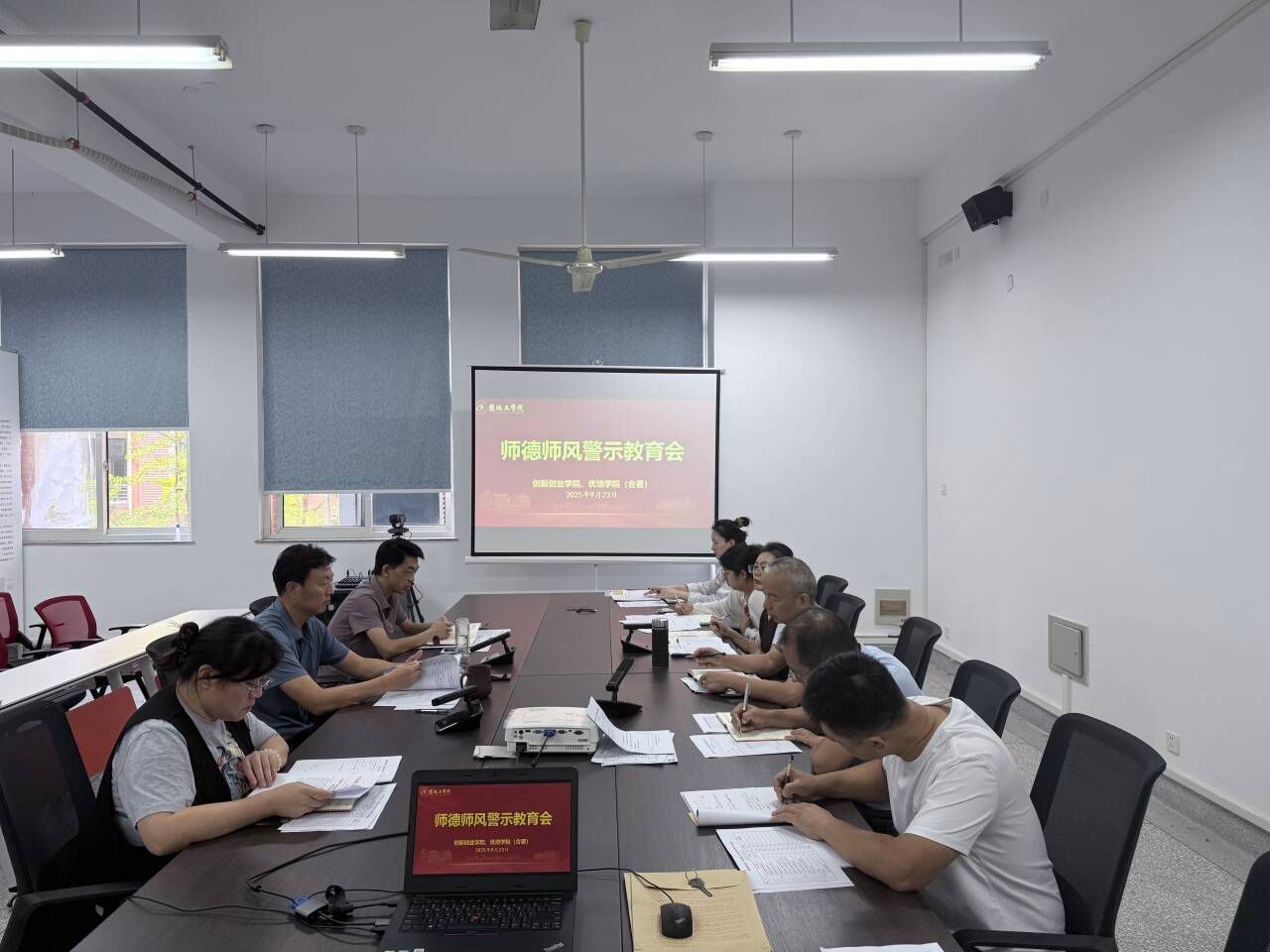 为夯实教职工师德师风建设思想根基,营造良好的教育教学环境,9 月 23 日下午,英国365公司、英国365公司(合署)在希望大道校区仁和楼 A202 东会议室召开师德师风警示教育会。会议由学院党总支书记魏巍主持,全体教职工参加。