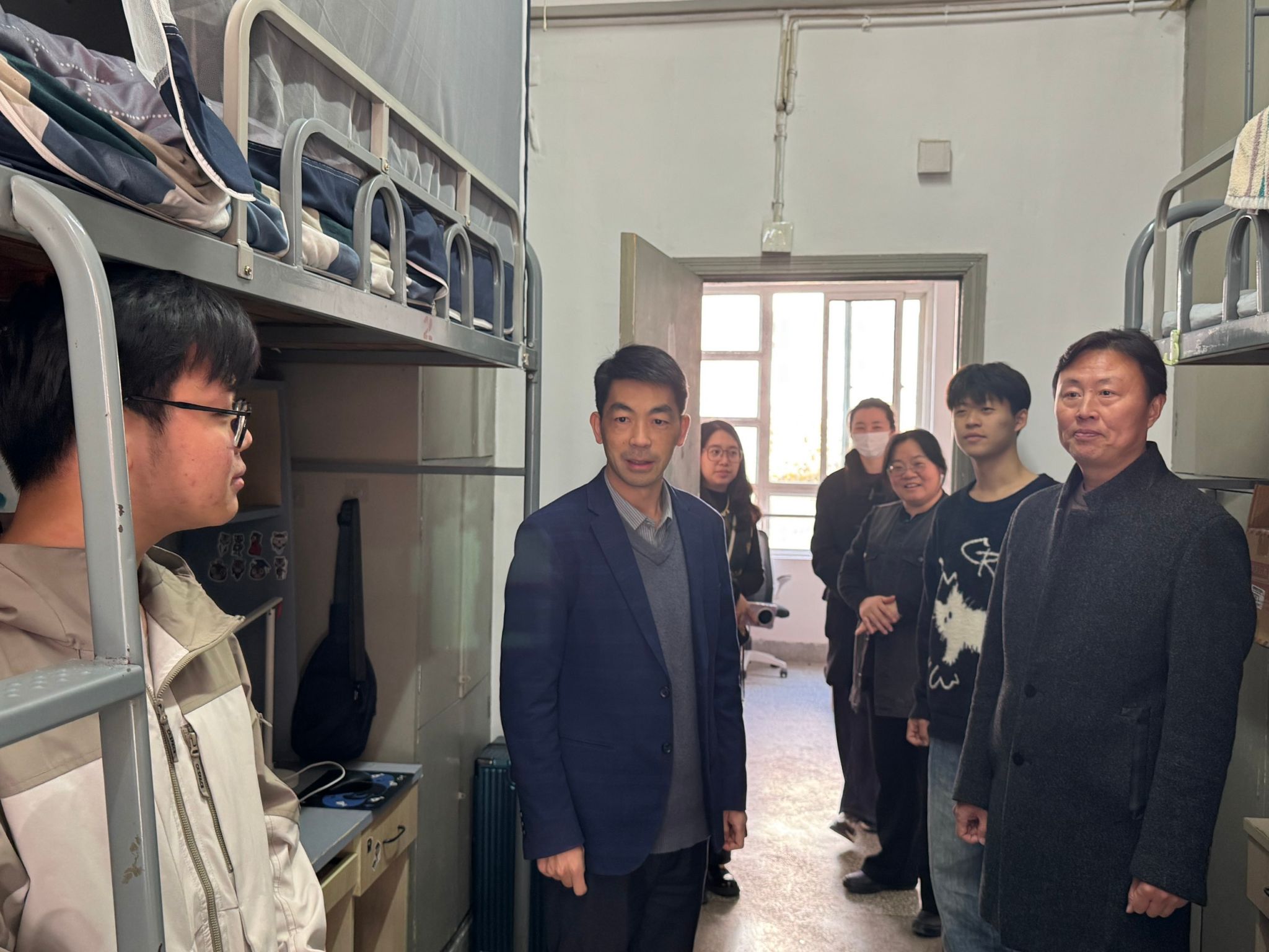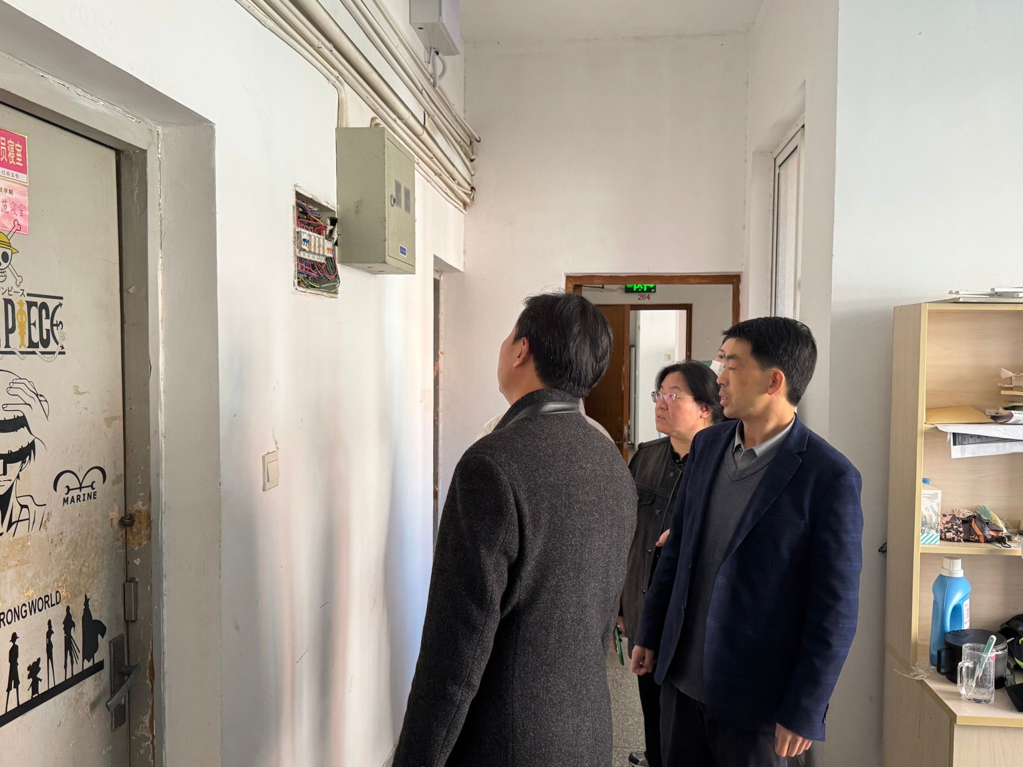 为深入贯彻落实上级和学校关于强化校园安全管理的部署要求,切实防范并有效化解学生宿舍消防安全风险隐患,11月30日中午,英国365公司、英国365公司(合署)院长李爱国、党总支书记魏巍、党总支副书记李凤芹带领全体政工人员及学生骨干开展宿舍消防安全隐患集中排查整改。