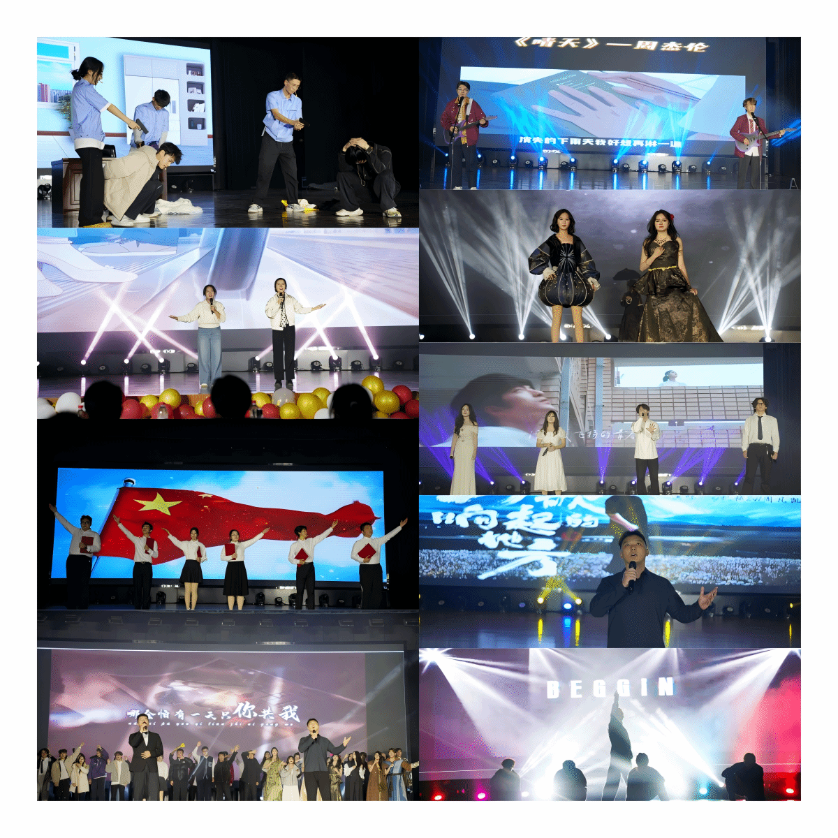 文艺表演环节精彩纷呈,高潮迭起。歌曲演唱婉转悠扬传递青春情怀,舞蹈表演活力四射展现蓬勃朝气,乐器独奏余音绕梁打动人心,反诈小品意义深刻筑牢师生安全防线,同学们以精湛技艺和饱满热情展现优培学子的多才多艺,台下掌声欢呼声此起彼伏,荧光棒与舞台灯光交相辉映,勾勒出冬日最热烈的青春画卷。演职人员合唱《海阔天空》的场景更是将氛围推向小高潮。