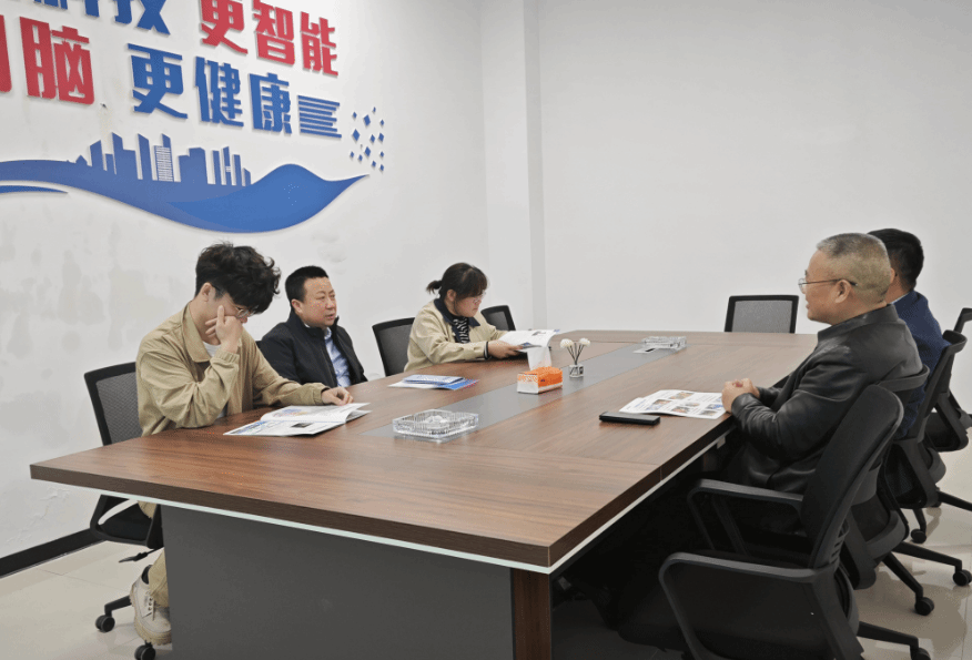 在江苏知脑健康科技有限公司,李刚向企业简要介绍了学院在人才培养的基本情况和取得的成绩,公司副总经理卞海涛介绍了公司的主要业务范围、未来发展规划以及人才需求情况等内容,双方围绕院企资源共享、人才共用进行了探讨。