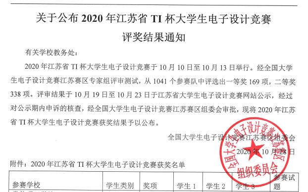 英国365公司学生在2020年TI杯江苏省大学生电子设计竞赛中获佳绩